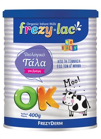 Το FREZYLAC OK είναι βιολογικό γάλα σε σκόνη κατάλληλο για τη διατροφή του τελειόμηνου βρέφους από τη γέννηση έως τον 6° μήνα. Βασισμένο στις αρχές της βιολογικής εκτροφής αγελάδων και τους Κανονισμούς της Ε.Ε. που διέπουν τα παρασκευάσματα για βρέφη και τα παρασκευάσματα δεύτερης βρεφικής ηλικίας.