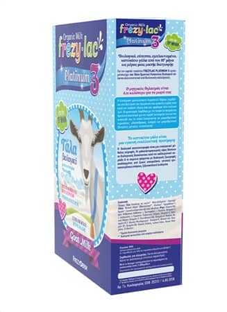 Το FREZYLAC PLATINUM 3 είναι βιολογικό κατσικίσιο γάλα σε σκόνη, κατάλληλο για βρέφη από τον 10ο μήνα στο πλαίσιο μιας μεικτής διατροφής.