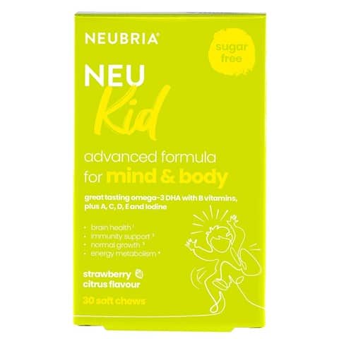 Το Neu Kid της Neubria είναι μια προηγμένη παιδική πολυβιταμίνη για μυαλό και σώμα, με υψηλή περιεκτικότητα σε ωμέγα-3 (300mg ανά ζελεδάκι), βιταμίνες Α, Β, C, D και ιώδιο.
