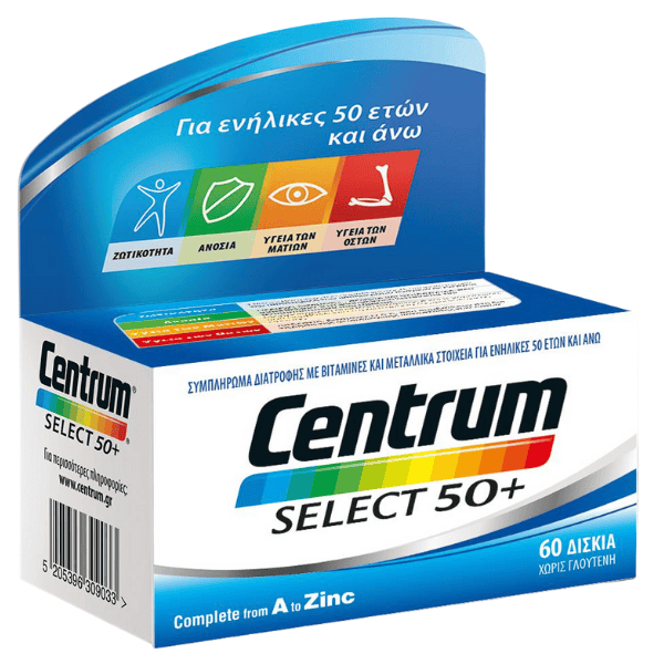 • Το Centrum Select 50+ δεν περιέχει γλουτένη και λακτόζη.