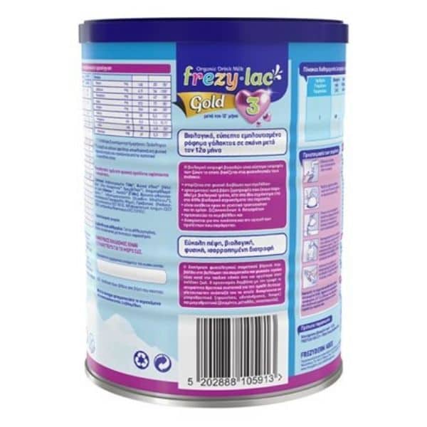 Το FREZYLAC GOLD 3 είναι βιολογικό γάλα σε σκόνη για βρέφη από τον 10° μήνα στο πλαίσιο μιας μεικτής διατροφής.