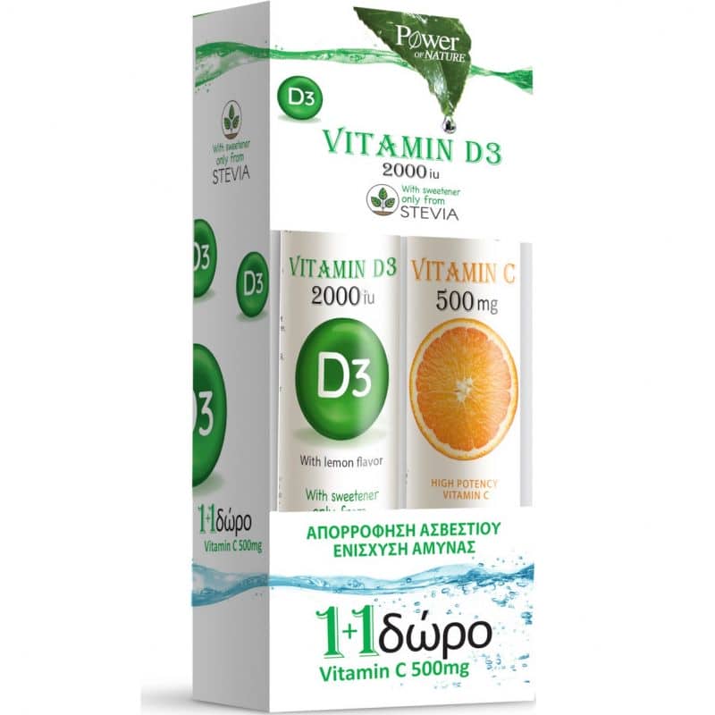 Power Health Promo Vitamin D3 2000iu & Vitamin C 500mg Πορτοκάλι 20 + 20 Αναβράζοντα Δισκία